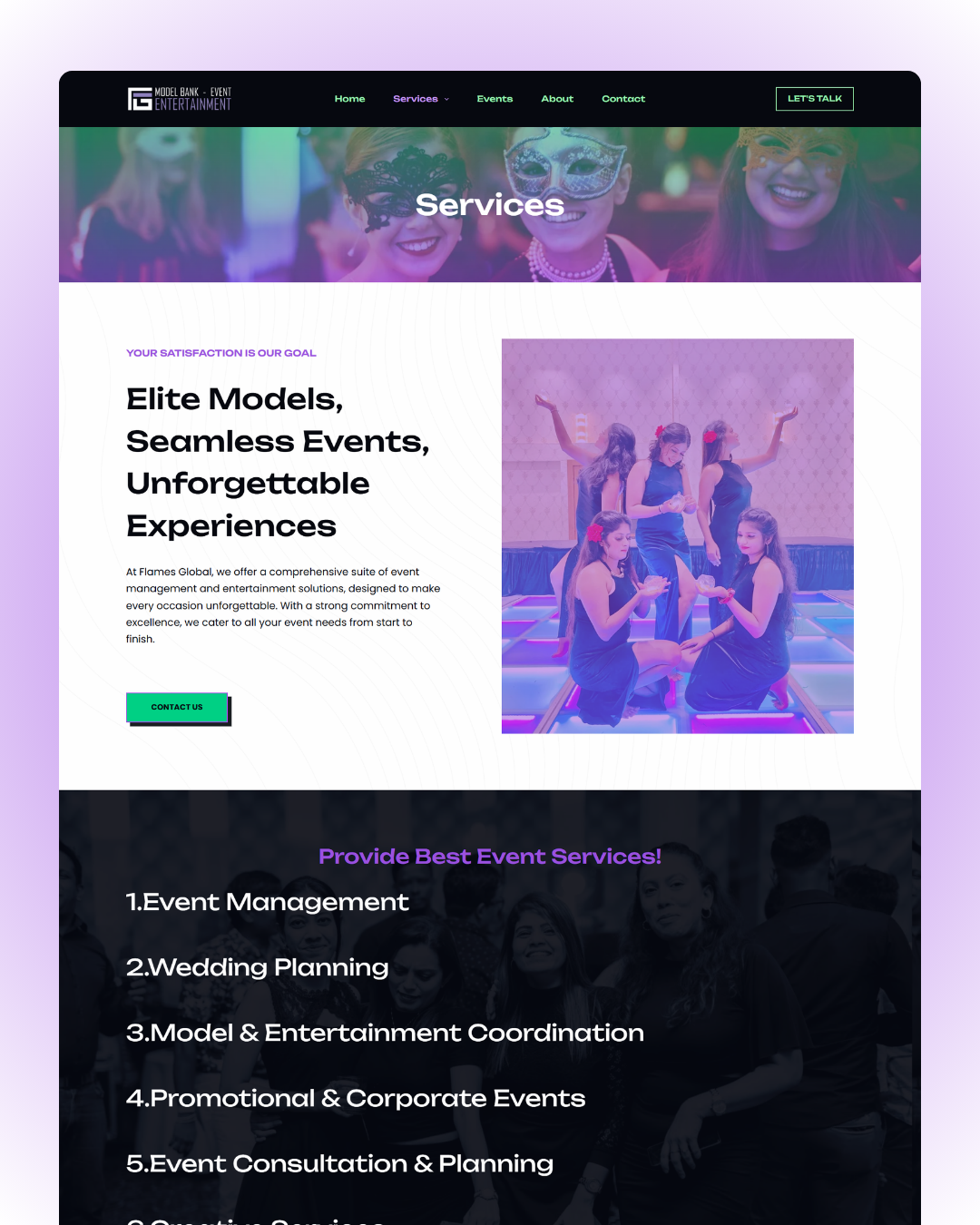Present your core services — from event management to entertainment coordination